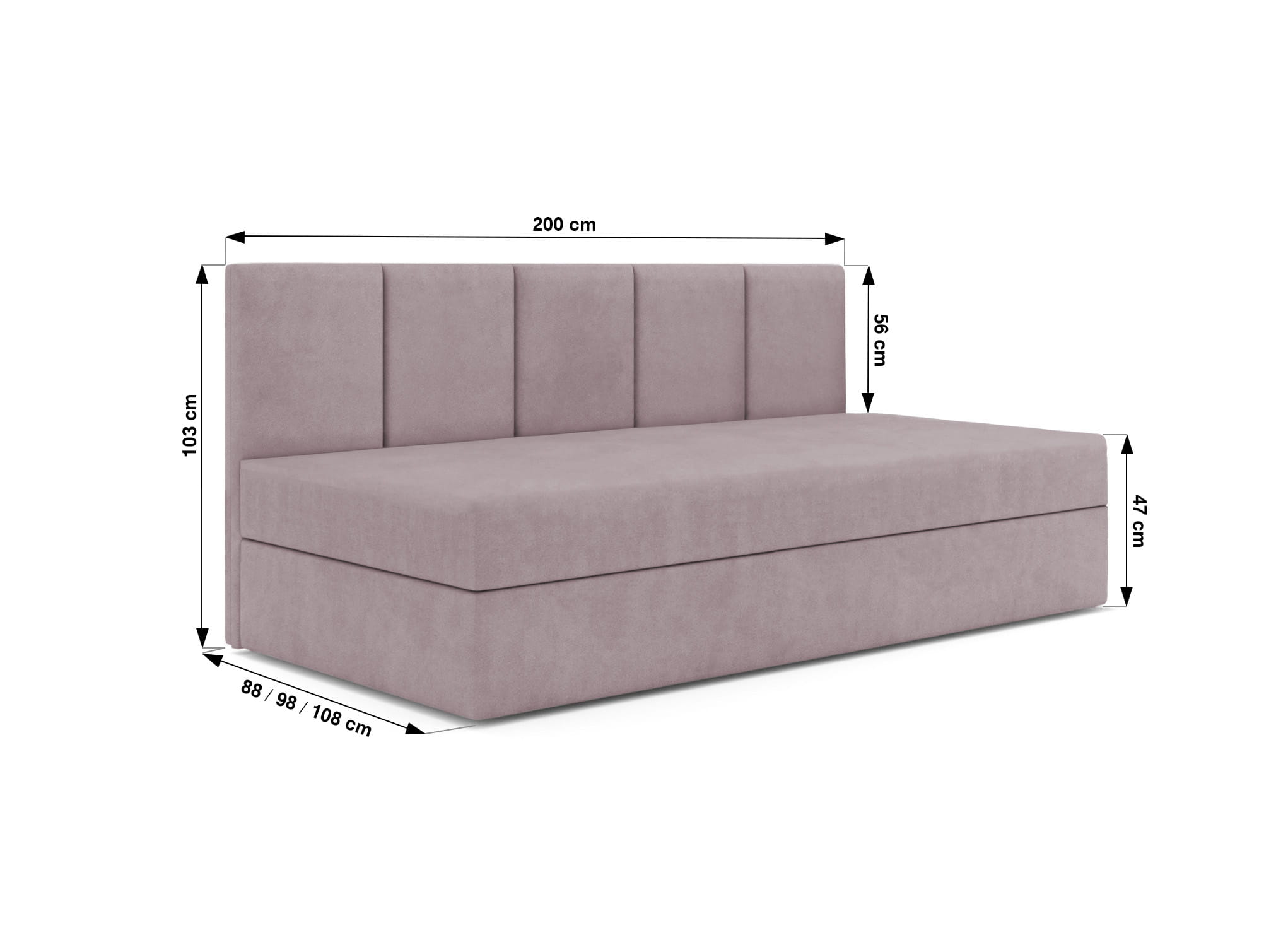 • Die Höhe der Schlaffläche beträgt angenehme 47 cm, während das seitliche Paneel eine Höhe von 103 cm aufweist.
