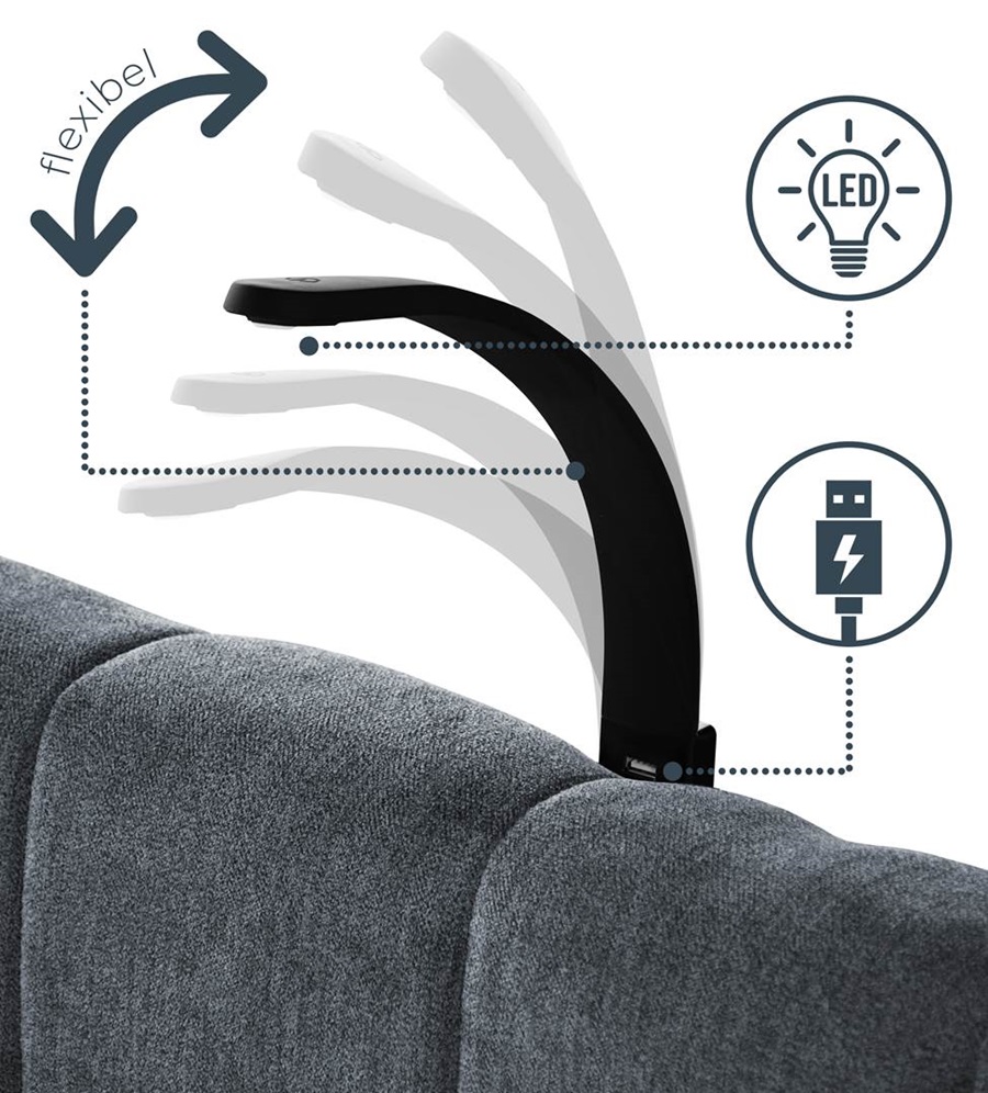 • 2 verstellbare Metalllampen, in Farbe schwarz, natürliches Licht, USB Aufladung, sowie 15W TUV Netzteil