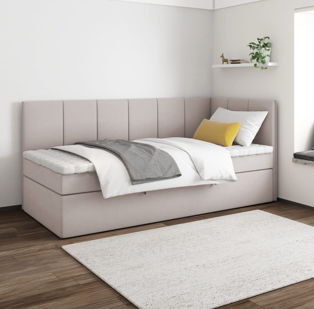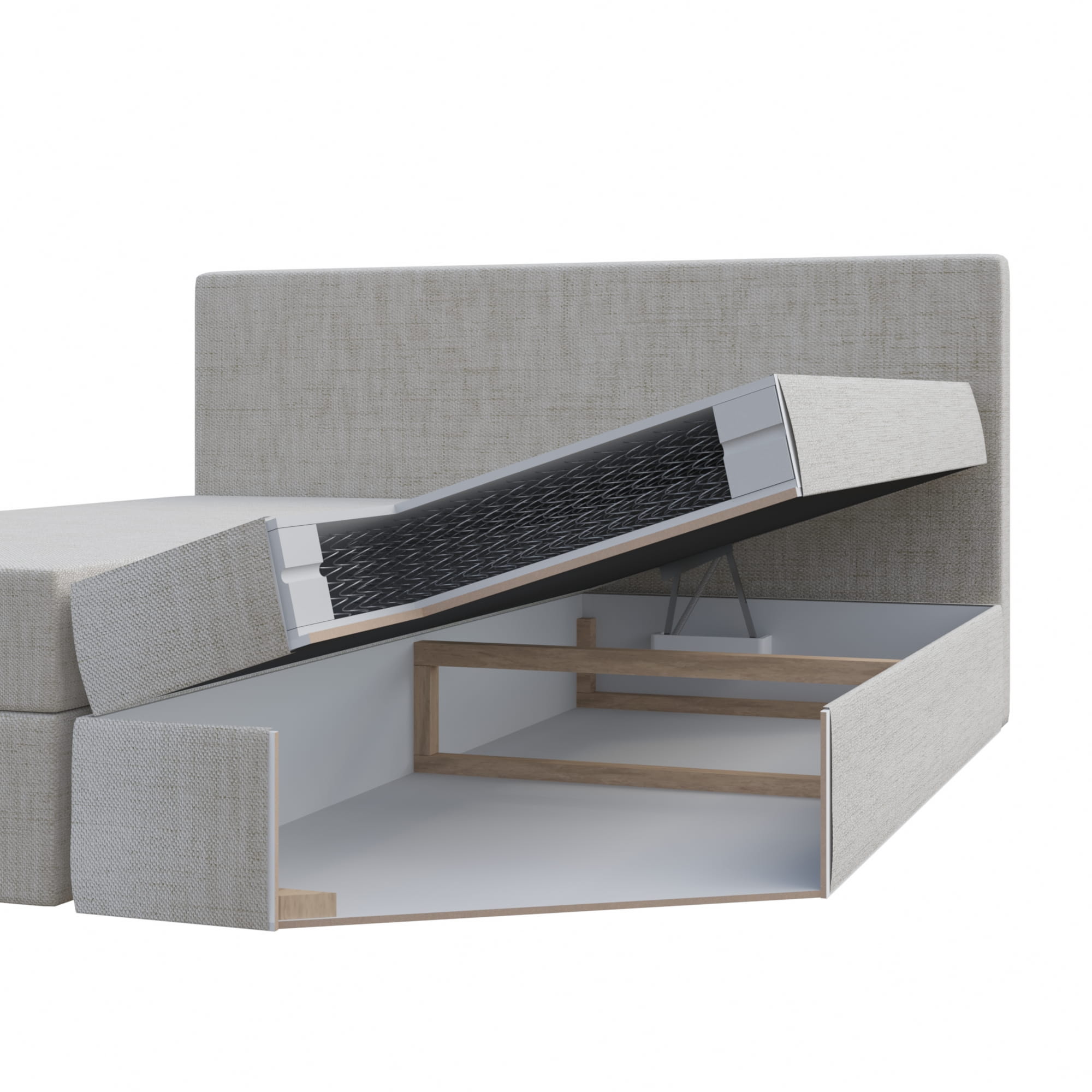 • Boxspring POLA ist ein praktisches Bett aus hochwertigen Materialien mit Behälter für Bettwäsche.