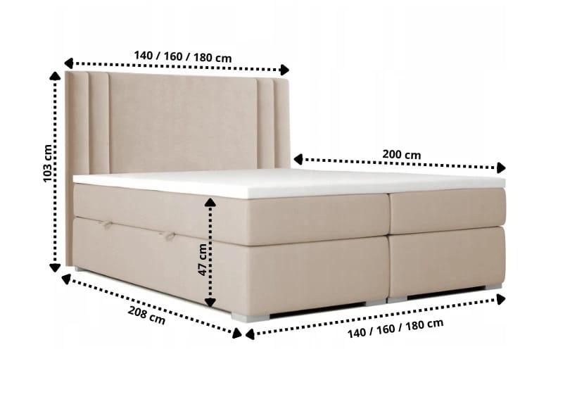 • Das Bett besteht aus einer Matratze aus Bonellfedern + hochelastischem Schaumstoff T30, 2 nach oben zu öffnenden Bettzeugbehältern und einer Federautomatik, die das Öffnen der Behälter erleichtert.