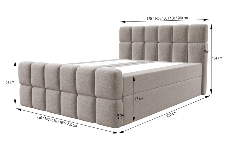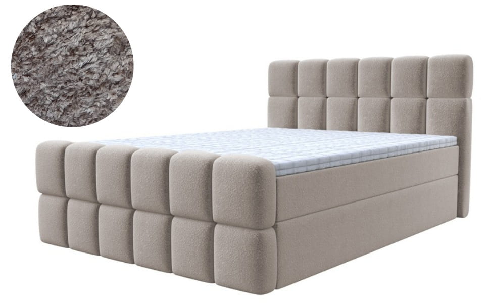 • Das gesamte Bett ist mit dem Stoff Fredo bezogen – modern, weich und angenehm im Griff. Das Material ist wasserabweisend, sodass verschüttete Flüssigkeiten weniger leicht eindringen und die Pflege des Bettes erleichtert wird.