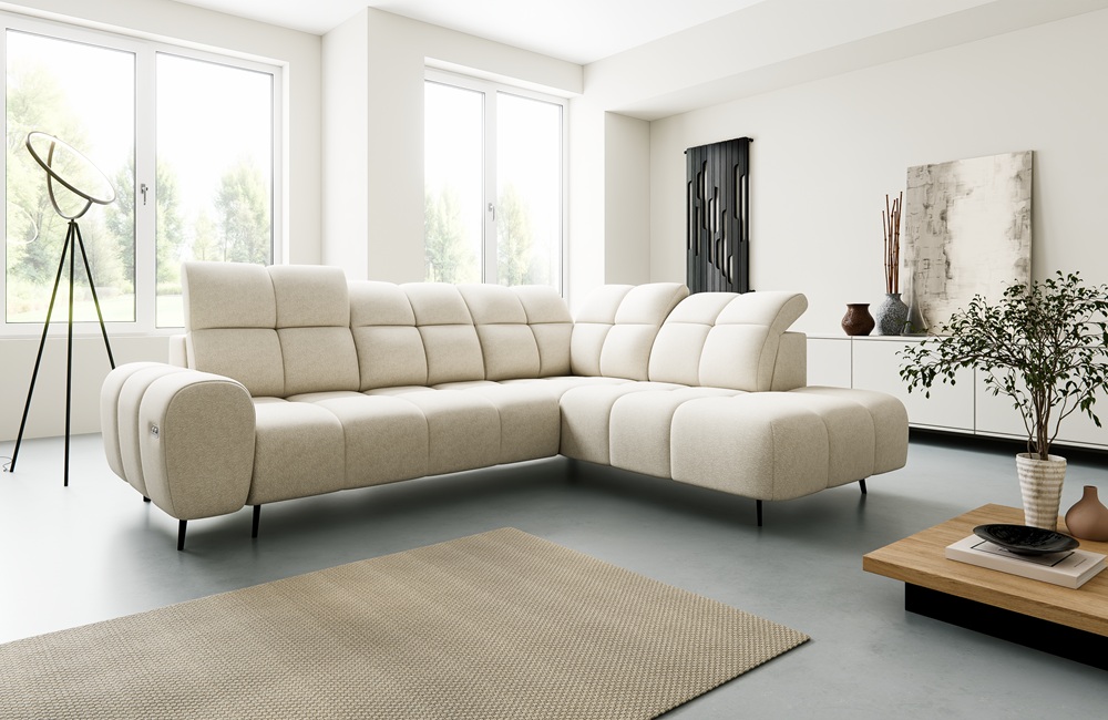Ein stilvolles Ecksofa, das für maximalen Komfort und modernes Design entwickelt wurde. Es eignet sich perfekt für den täglichen Gebrauch sowie für entspannte Momente mit Familie und Freunden.